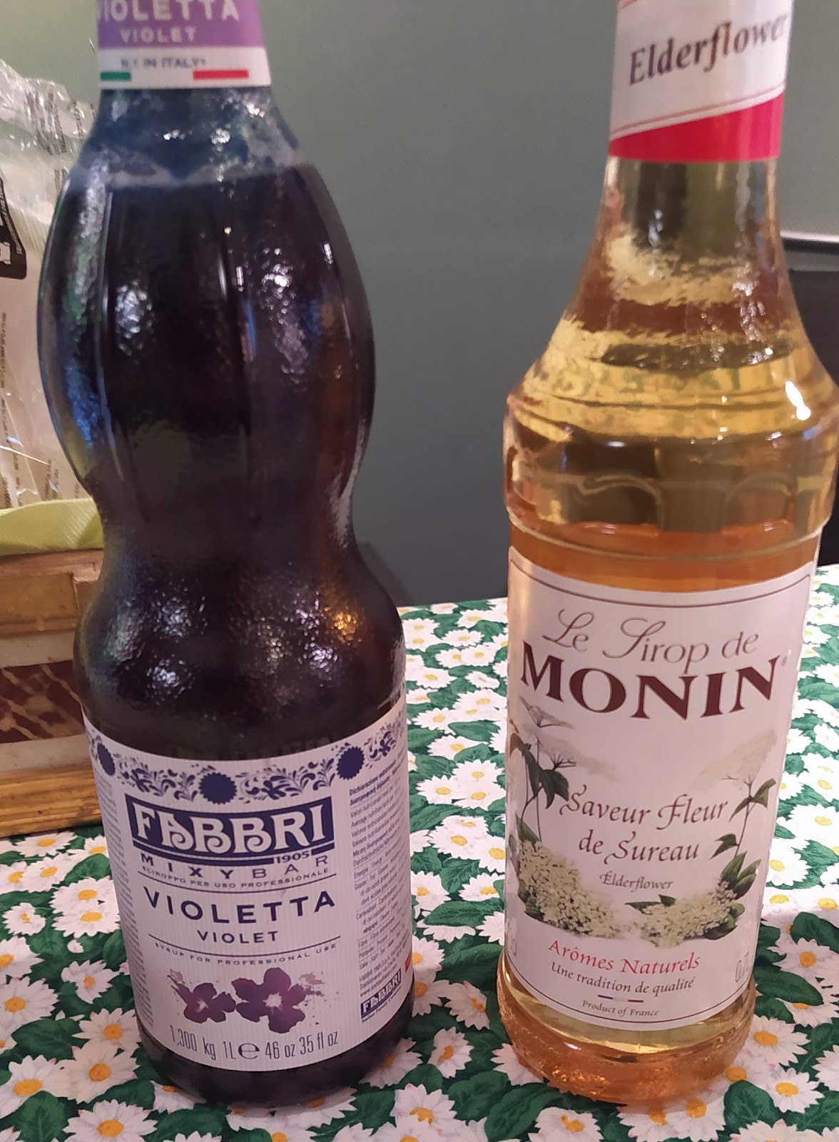 Ed infine veniamo alle bevande: prosecco di Valdobbiadene, acqua liscia e frizzante e gazzosa. Che potevano essere serviti "nature" oppure profumati con sciroppo di violetta o sciroppo di fiori di sambuco. Peccato non avere foto dell'effetto finale che con la violetta colorava il prosecco di azzurrino...
