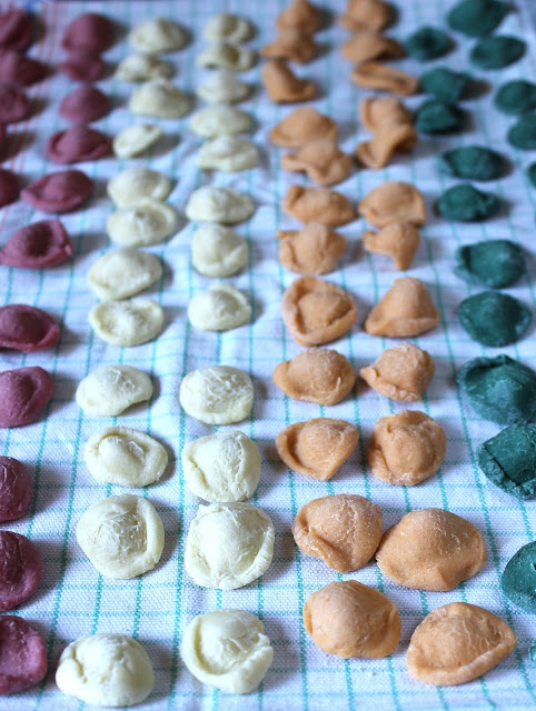 E' lo spirito con cui mi sono cimentata ultimamente in un paio di occasioni con la pasta di semola colorata, che mi viene bene proprio grazie alla cura nei gesti e all'attenzione per i dettagli acquisiti lavorando con Rina (grazieeeeeee!!!!!), anche se la pasta di semola con lei non l'ho mai preparata.